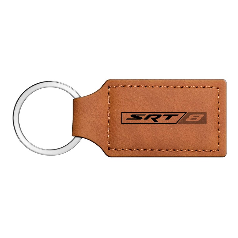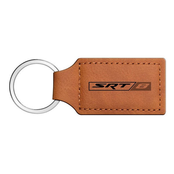 iPick Image - SRT-8 Logo Rectangular Brown Leather Key Chain for Dodge Jeep Challenger Charger Durango, Dart
