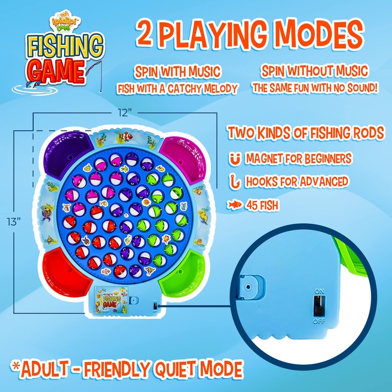 - Juego de juego de pesca clásico: disfruta de una diversión sin fin con nuestro vibrante juego de pesca magnética, completo con peces coloridos, bastones de pesca y una tabla giratoria motorizada. Embalado en una hermosa caja, es perfecto para jugar imaginativo.