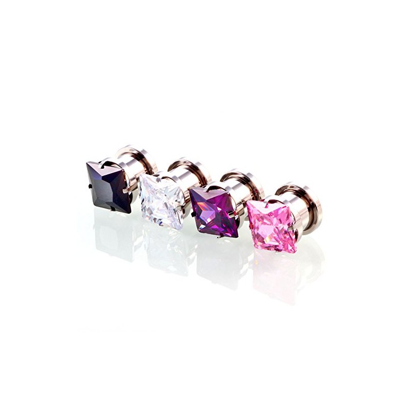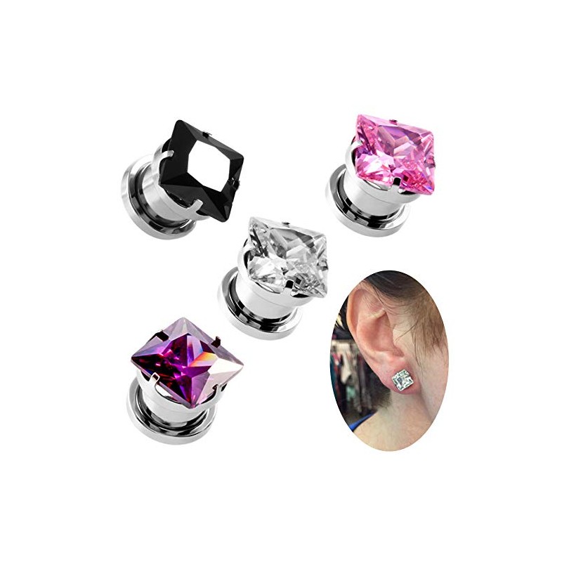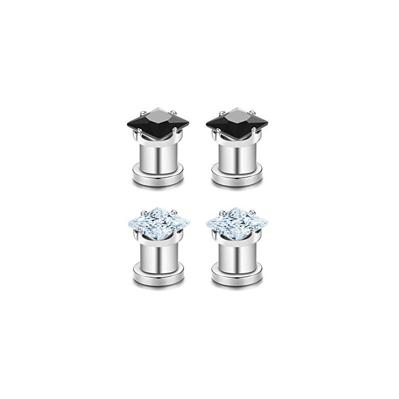IPINK-Punk 6g- 00g Stainless Steel Cubic Zirconia Screw Tunnels Ear Stretcher Plugs Piercing Gauge 2 Pairs Set, Metal