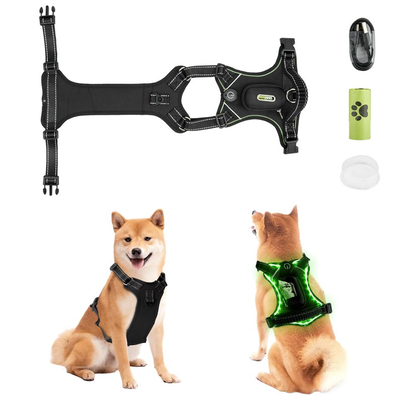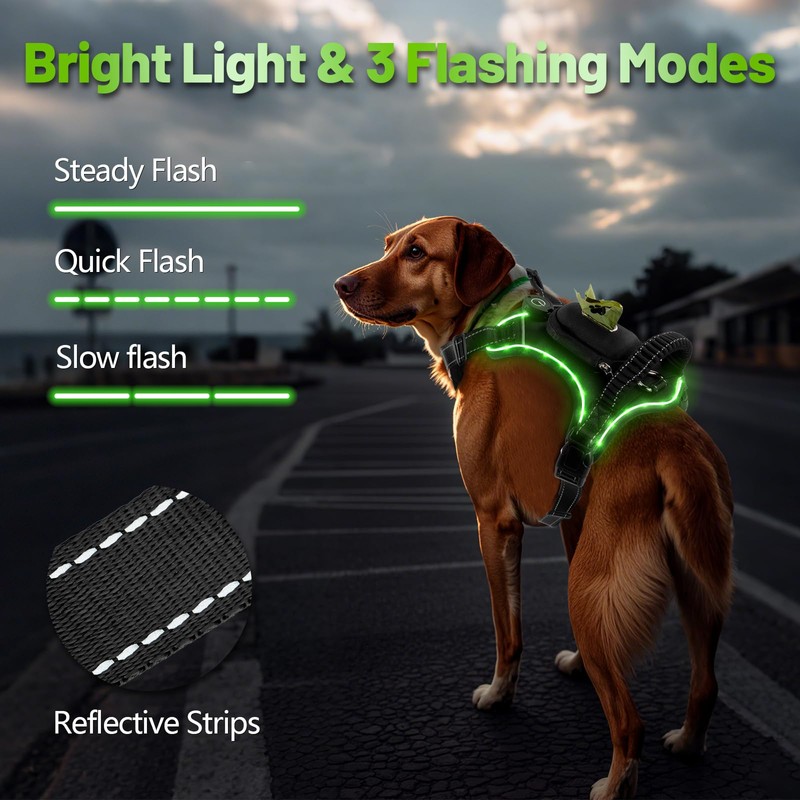 - Ipixune Light Up Dog Harness With Poop Bags, LED LightHound Adjustable Dog Vest Harness, Suitable for Small and Medium Sized Dogs, Rechargeable Lighted Dog Walking Harness With 3 Flash Version