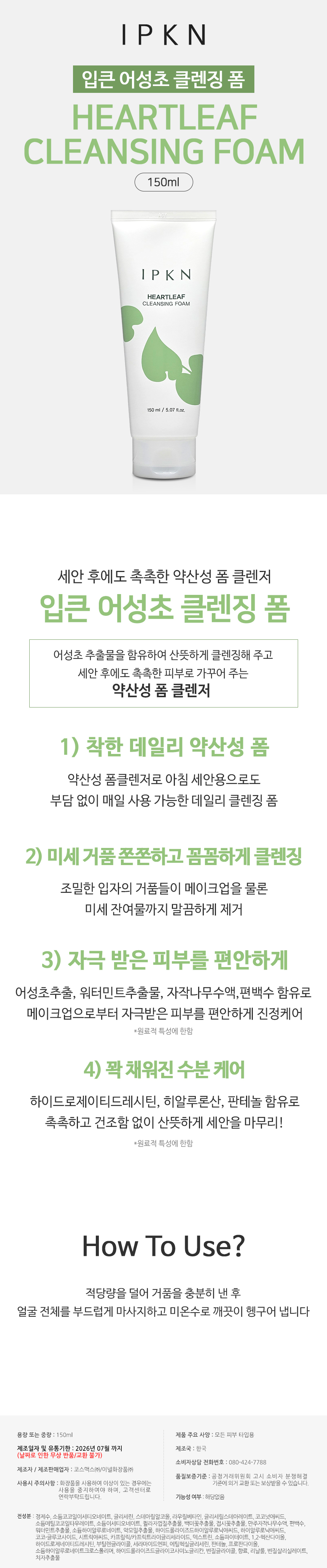 Ipkkeun Eoseongcho Cleansing Foam 150ml / 입큰 어성초 클렌징 폼 150ml