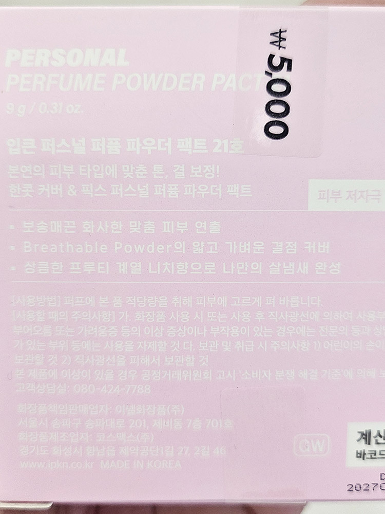 ![]() ![]() 입큰 퍼스널 퍼퓸 파우더 팩트 21호 9g