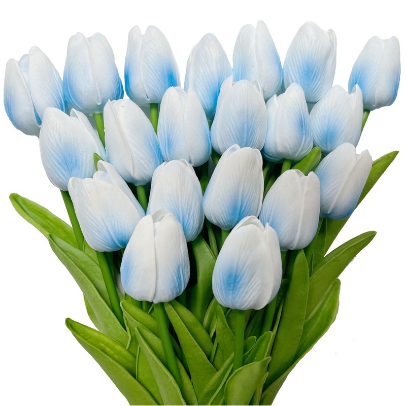 IPLNTS 20PCS All Saints' Day Light Blue Real Touch Tulips Artificial Flower Tulips PU for Home Wedding Decoration Brides Hand Holding Bouquet Artificial Flower Decoration