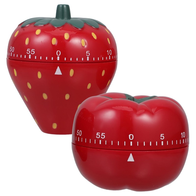 iplusmile 2pcs 60 Cute Kitchen Timer Mechanical Countdown Timer for Cooking Baking Tea Brewing Charming Strawberry Persimmon Design Efficient Management Tool