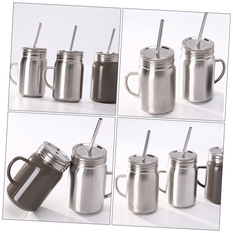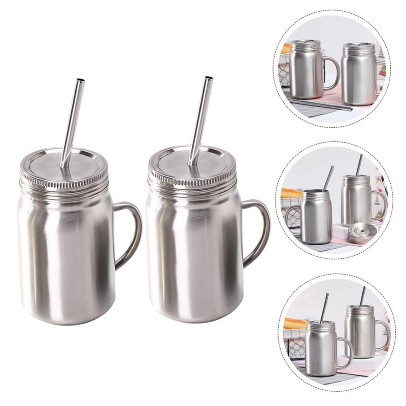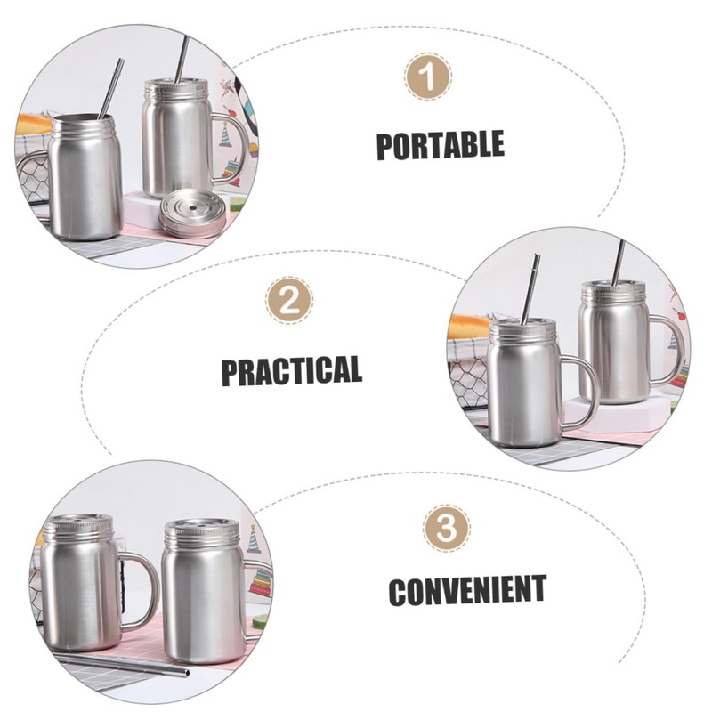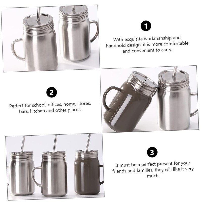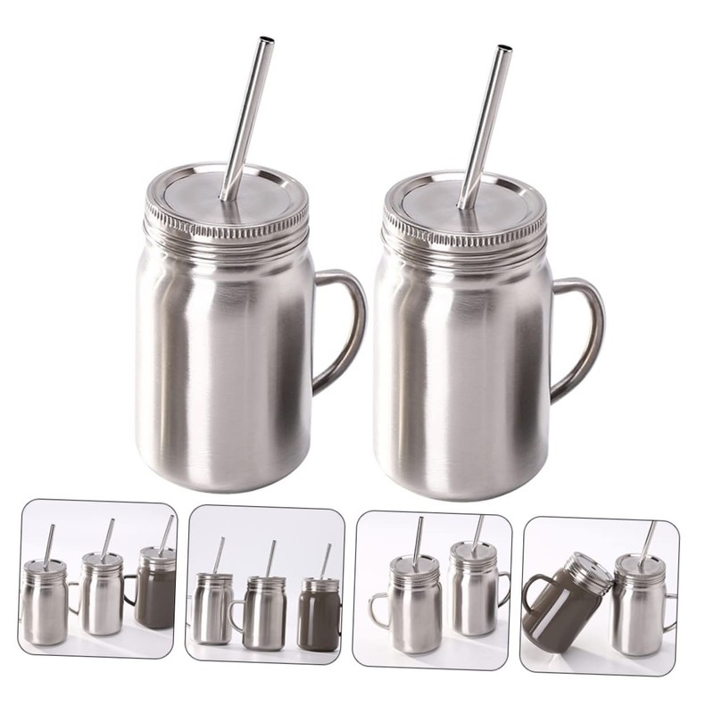 stainless steel camping mug for students, office workers, housewife, etc. drinking jars With workmanship and handhold design, it is more comfortable and convenient to carry.drinking cup These jars with lid and straw, which are made of stainless steel materials, featuring portable, rust-proof, and -proof, for use