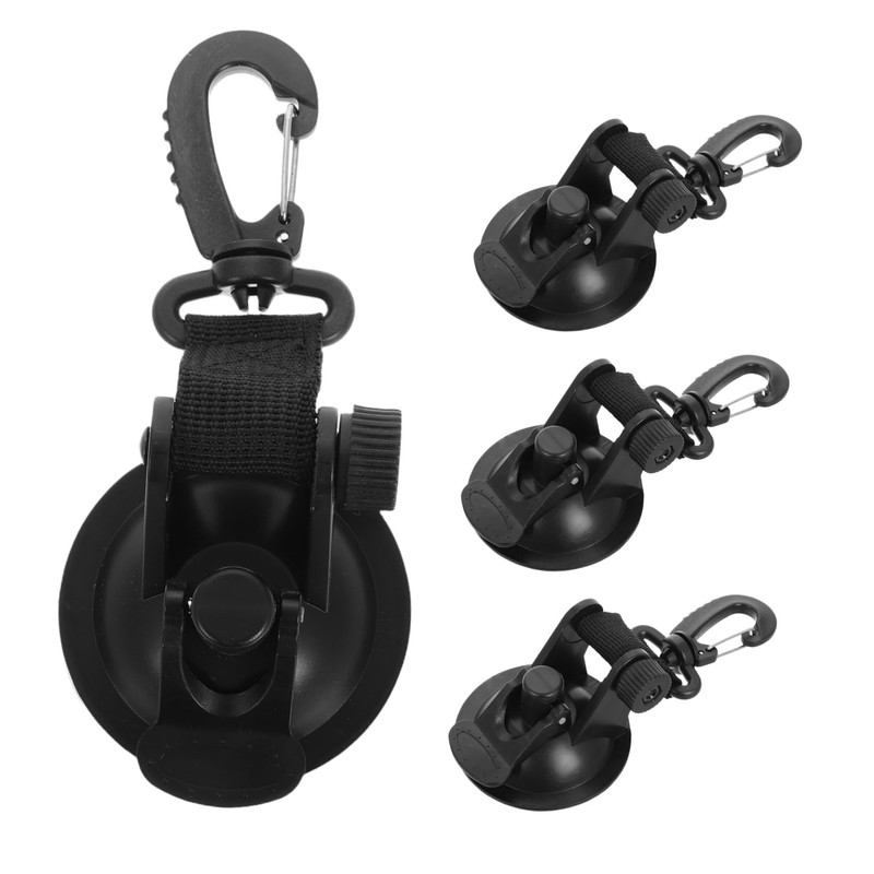 iplusmile 4 Pcs Heavy Duty Suction Cup Hooks for Car Camping Outdoor Travel and Rv Awning Durable Suction Hooks for Secure Tie Down Anchor Black