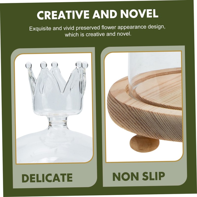 iplusmile Preserved Flower Glass Dome with Wooden Base Flat Bottom Glass Cover for Micro Landscape Artificial Plant Display Table Centerpiece Home Decor and Compact Design