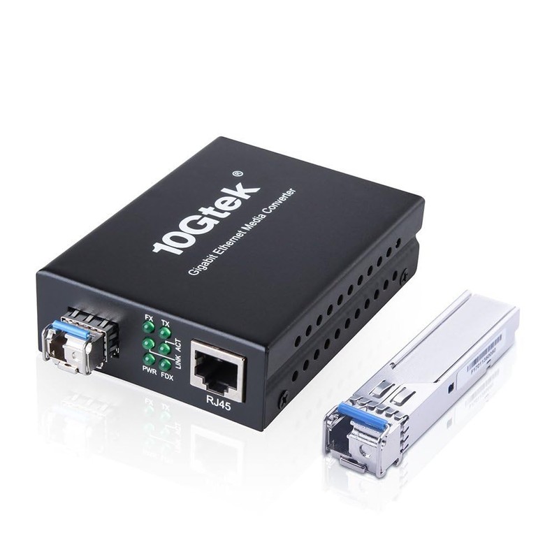 - Package Contents: 2* Gigabit Ethernet SFP to RJ45 Media Converter; A pair of 1000Base-LX Bidi SFP Module; 2* British Power Adapter