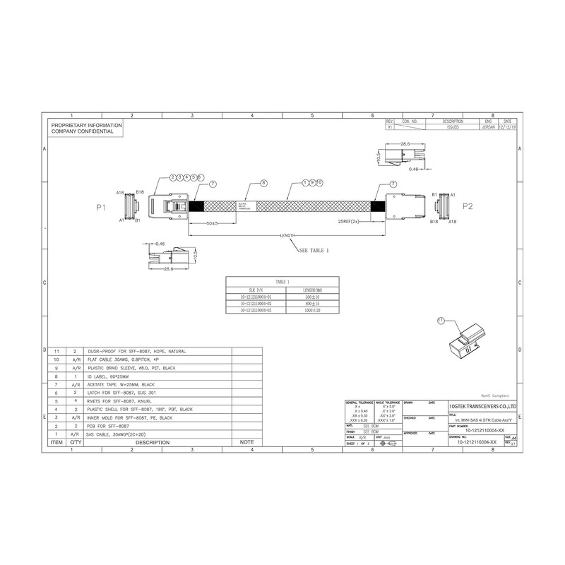 - Both side of SFF-8087 cable are include an industrial grade woven mesh sheath over the individually shielded ribbon cables, cloth tape strain relief to protect the cables without rigidity, and sturdy 36 pin SFF 8087 connectors with stainless steel latches to ensure a solid connection