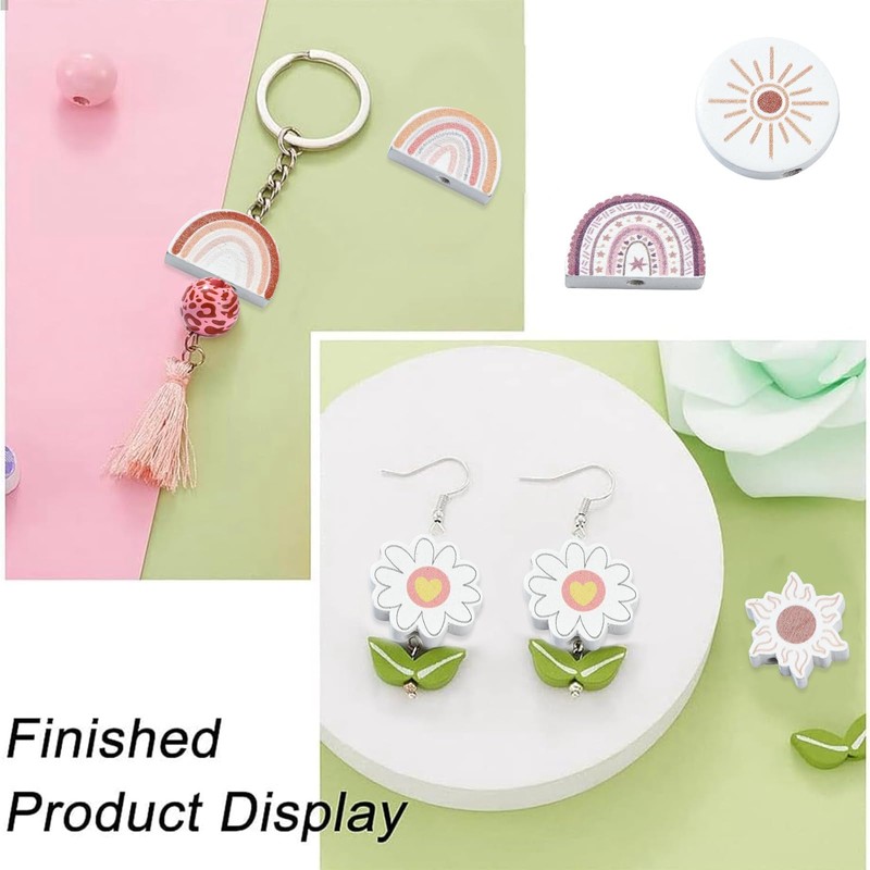 - 🌸Boho Themed: Diverse shapes provides you with many choices, round, arch, flower, etc. and boho wooden beads for crafts evoke a rustic and free-spirited aesthetic that embodies the essence of boho culture, adding character and charm to your jewellery and decor.