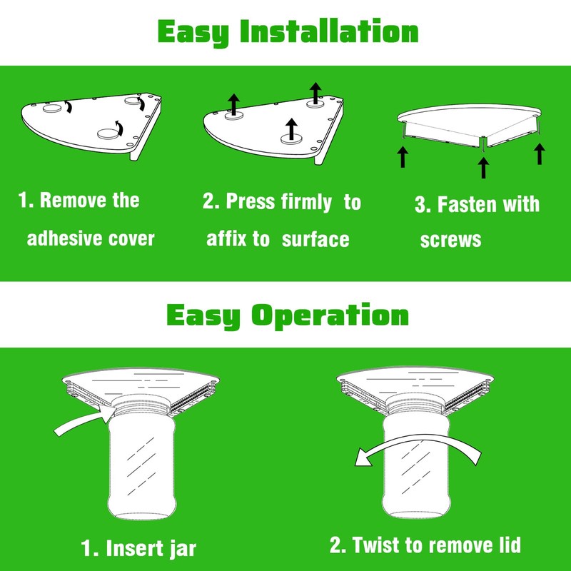 - Under Cabinet Mount Our jar opener is mounted under your cabinet, so it's doesn't take up any counter space. It's always there when you need it, It's never lost, never in the way. Comes with 3 peel-and-stick adhesives and 3 stainless steel screws, very easy to install.