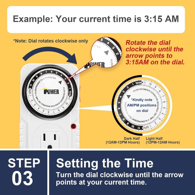 - Easy to use: Just turn the built-in pin dial to the current time by pressing the toggle pins down for ON, or keeping them up for OFF and then plug into outlet is ready