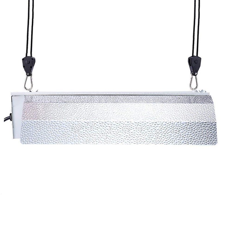 This reflector suspension system enables you to raise and lower the light in one simple movement. With tension mechanism, the hood will stay in place once set at the desired height. Easily raise your lights when you are doing your routine work in the room, and just pull them down when you leave. It also perfectly meets the requirement of adjusting the hood to provide different light supply as plants grow. Features: Heavy duty locking mechanism; 1/8inch Nylon rope; Two metal hoods; One release clip to unlock the rope; To provide reliable support & befitting distance from plants with tension mechanism; Up to 150 lbs weight load capacity per pair; Compatible with all parabolic and round reflectors, so long as hooks and eyebolts suit; Length: 8 feet; Attaching the Ratchet: There are two ways of installing the light hanger: with the mechanism attached to the ceiling. If you use the light hanger for luminaries in a grow tent, we recommend that you install the Light Hanger with the free end carabiner to the ceiling frame and the mechanism to the luminary as illustrated. This way, you will not put any stress on your tent frame when hoisting and it enables easier adjustment. For filters, we recommend that you attach the free end with the carabiner around the filter to avoid rotation of the filter when hoisting. Support the filter when hoisting it to avoid stress on your grow tent frame.