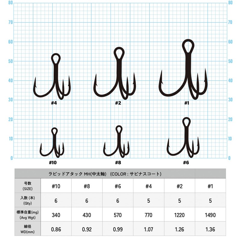 IPPON Rapid Attack Treble Hook #14 - #1 M (Medium Shaft) MH (Medium Thick Axis) H (Thick Axis) Sabinus Coat, Made in Japan, Triple Salt (MH (Medium Thick Axis)/#2: 5 Pieces)