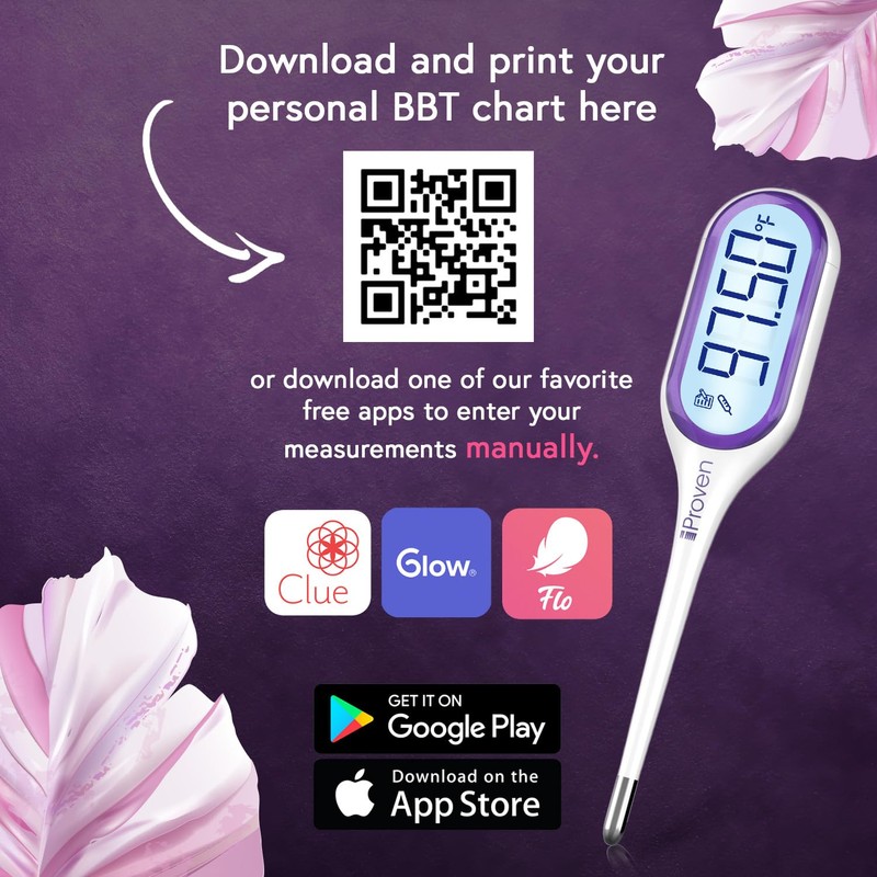 - 60 Second Fast BBT Reading - The upgraded iProven algorithm delivers the fast and accurate readings in only 60 seconds. You can enter measurements manually into a paper fertility tracker chart, or download any ovulation tracker app and input the data yourself (independently, does not have Bluetooth app syncing)