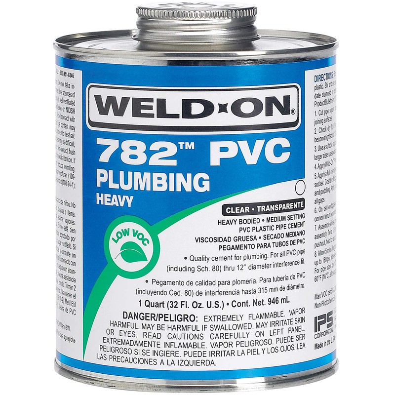 Weld-On 14016 782 PVC Heavy-Bodied High Strength Plumbing Solvent Cement - Medium-Setting and Low-VOC, Clear, 1 Quart (32 fl oz)