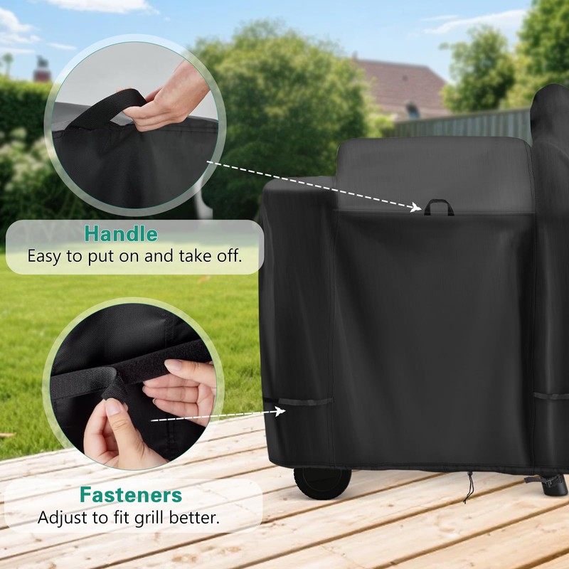 5. The hook and loop fasteners and drawstring allows to adjust grill cover to fit Traeger grill snugly.