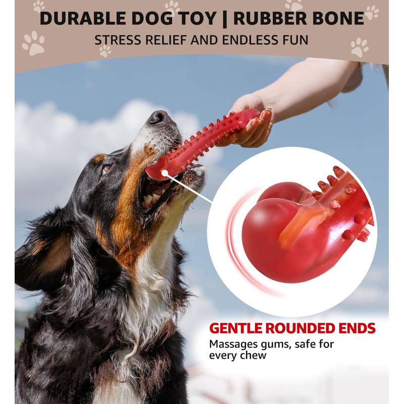 IPTPAS Dog Chew Toy for Aggressive Chewers, Tough Natural Rubber Bone with Irresistible Beef Flavor, Long-Lasting Teeth Cleaning & Reduce Boredom, Durable Dog Dental Toy for Small Medium Large Breeds