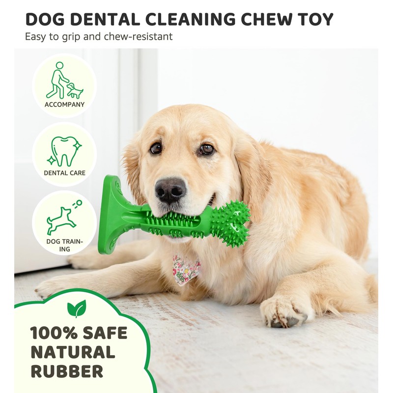 IPTPAS Dog Chew Toy for Teeth Cleaning, Natural Rubber Toothbrush Stick with 360° Bristles, Durable Dog Toys for Aggressive Chewers, Interactive Dental Toy for Medium and Large Dogs (Green)