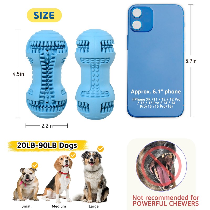 - Paw-Friendly Grip Design: The thoughtfully shaped toy features a narrow center and wide ends, making it easy for dogs to grip with their paws. Suitable for small, medium, and large breeds (20–90 lbs), this toy measures 4.5" x 2.2”—perfect for daily interactive play and solo entertainment.
