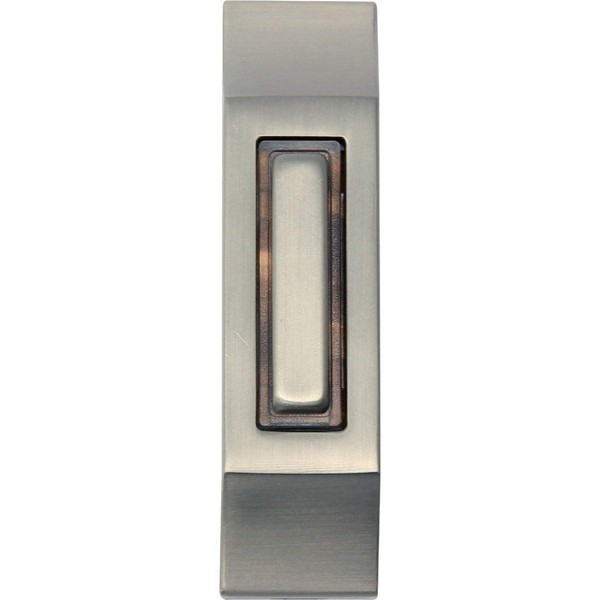 IQ America DP1234A Wired Satin Nickel Plated Surface Mounted Contemporary Lighted Doorbell Pushbutton Push Button Black Accent Ring use with most Wired Door Bells Chimes 3.5" x 1" x .75"