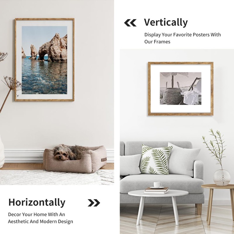 - 【Design】18x24 Poster frame Brown perfect for your cherished memories and favorite posters; comes with 3 hanging hardware for hassle-free display in both horizontal and vertical formats to hang flat against the wall.