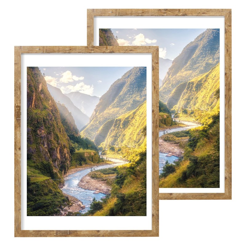 iRahmen 18x24 Frame Set of 2, Rustic Brown Wood Frame, Display 16x20 Picture with Mat or 18 x 24 Poster without Mat - Horizontal or Vertical Wall Mounting, Wall Hook Included