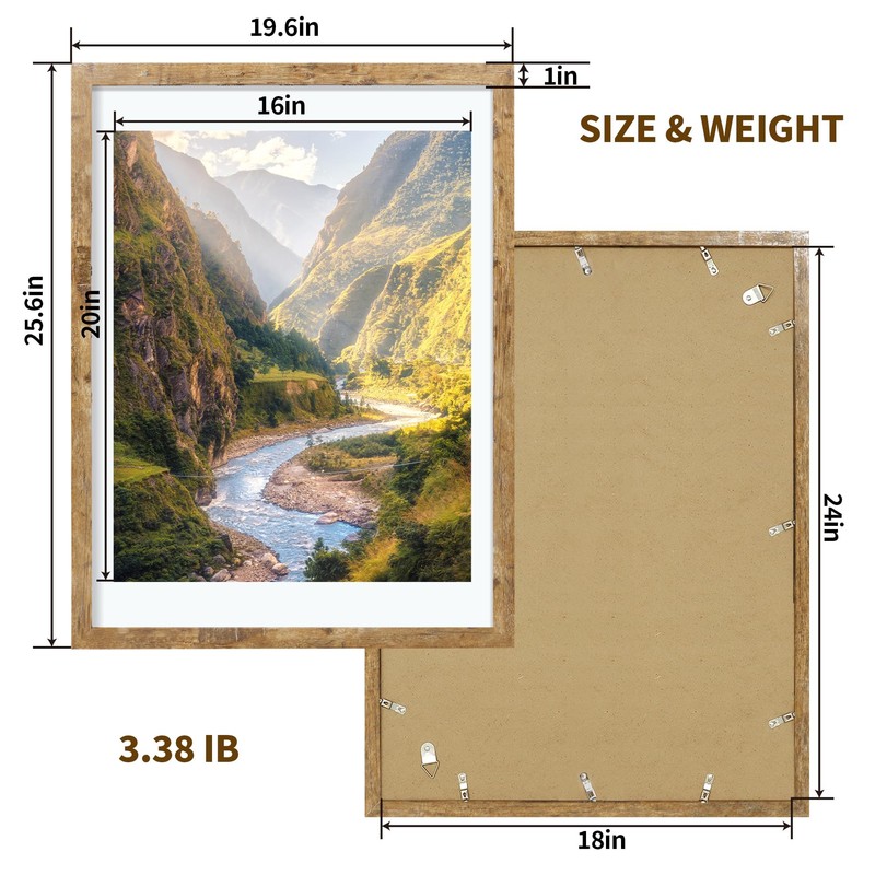 - 【Size】The overall size of the frame is 19.6x25.6x0.6 inches, can accommodate 18 x 24 inches without mat and 16x20 with mat posters, puzzles or pictures.