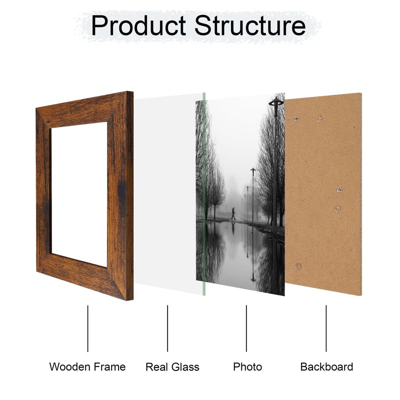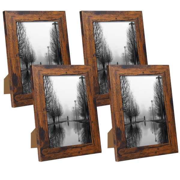 - WOOD PHOTO FRAME: The iRahmen 5 x 7 picture frame set includes 4 well-built dark brown picture frames, This picture frames set made of MDF, The HD real glass cover can clearly display your cherished photos, protecting your photos from dust, moisture and scratches.