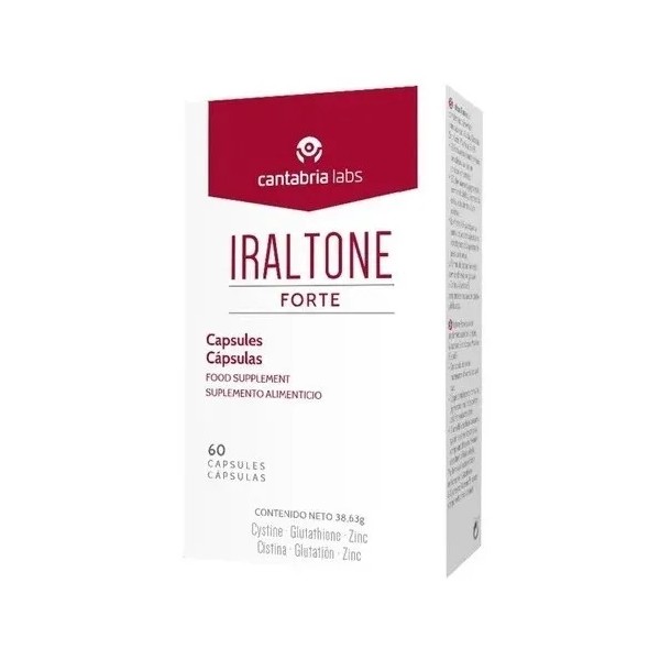 Iraltone Forte es un suplemento alimenticio formulado por Cantabria Labs que actúa directamente sobre el ciclo capilar, ayudando a detener la caída del cabello y promoviendo el crecimiento sano desde el interior. Es ideal para combatir la caída aguda o estacional, causada por estrés, fatiga, cambios hormonales o carencias nutricionales.