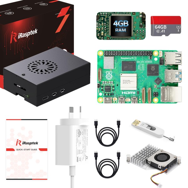 iRasptek Starter Kit for Raspberry Pi 5 4GB RAM-Pre-Loaded with 64GB Edition Raspberry Pi OS (Aluminum Case)