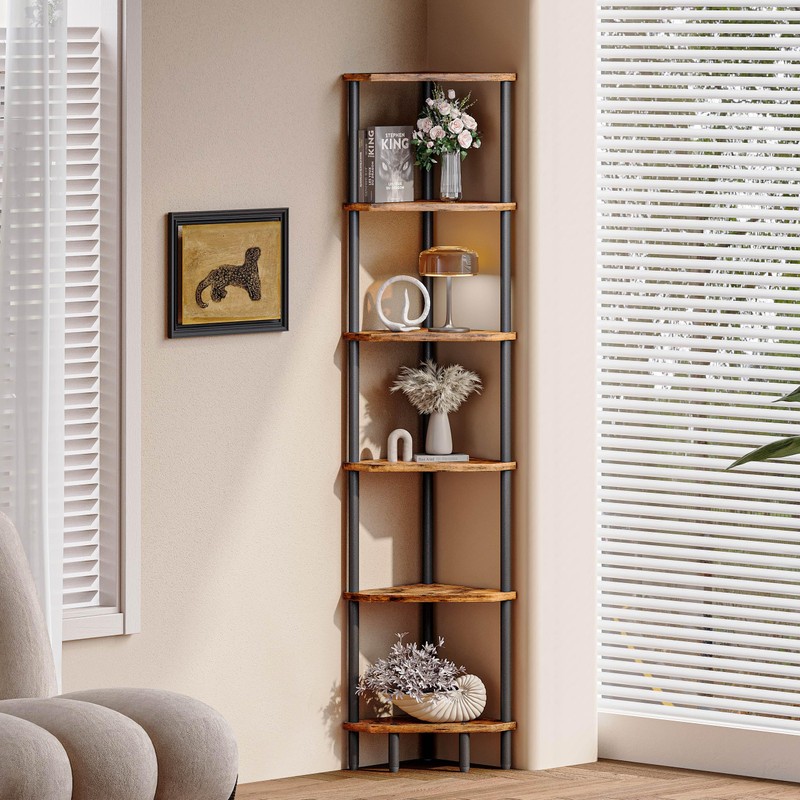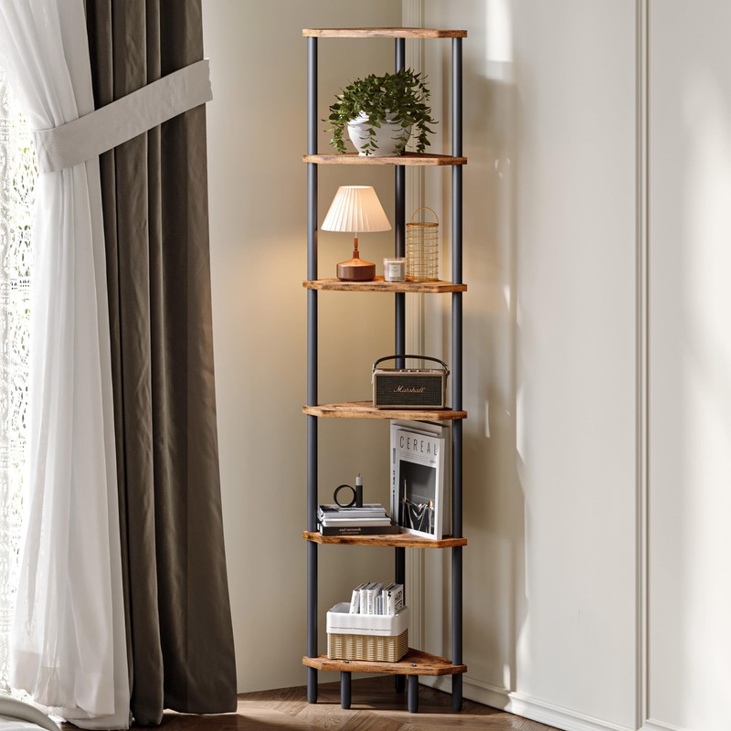 - Multifunctional Storage: The 6-tier corner wall shelf, sized 11.8”L x 11.8”W x 66.5”H, this tall shelf provides you with ample storage space to store Your books, photos, plants, decorations, lamp, scented candles, small audio and other household items