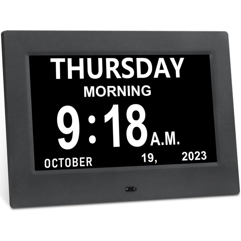 Irednolw 7inch Large Impaired Vision Digital Alarm Clock with Day and Time, Digital Day Clock for Seniors with Auto Dimming / 8 Alarms Clock