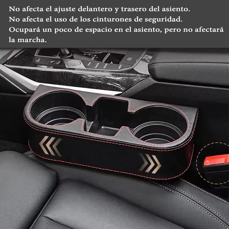 - Portavasos para coche: esta caja de almacenamiento para automóvil es adecuada para el espacio entre el asiento del automóvil y la consola central. Puede almacenar vasos de agua, bebidas, teléfonos móviles, llaves, tarjetas y otros objetos pequeños. Te permite tenerlo a tu alcance mientras conduces, garantizando una conducción segura y limpieza en el coche.