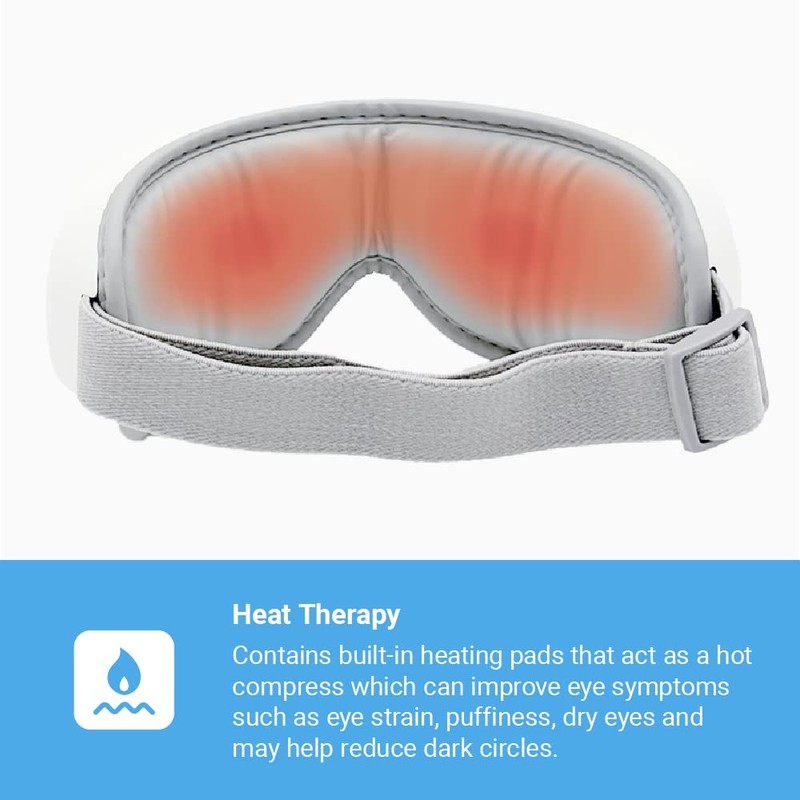 - SOOTHING WARM COMPRESS: Massager features built in heating pads that act as a hot compress which can improve eye symptoms such as eye strain, puffiness, dry eyes and may help reduce dark circles.