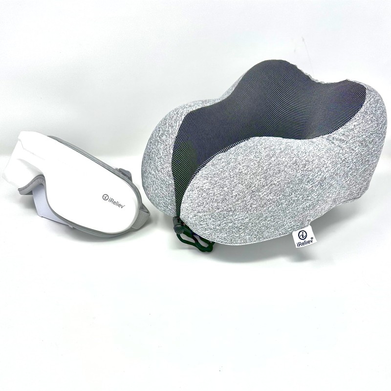 iReliev Eye Massager and Neck Pillow Bundle, Eye Massager with Heat, Bluetooth Music Heated Massager for Migraines, Eye Strain, Dark Circles Eye Bags Dry Eye Improve Sleep, Best Gift for Women/Men