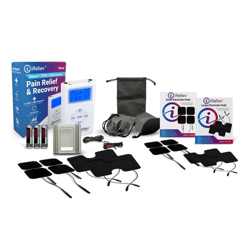 - 2 in 1: iReliev TENS + EMS Combination Unit Combines Two Therapies in 1 device.