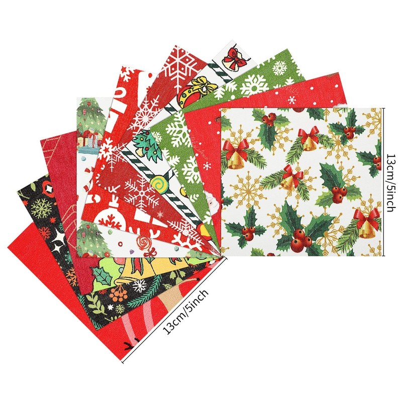 - 50 Pieces Christmas cotton fabric squares: comes with 50 Pieces Christmas cotton fabric squares in 10 different Christmas patterns, 5 pieces for each pattern, the square is approx. 5 x 5 inches/ 13 x 13 cm, proper size for you to DIY Christmas scrapbooking art craft