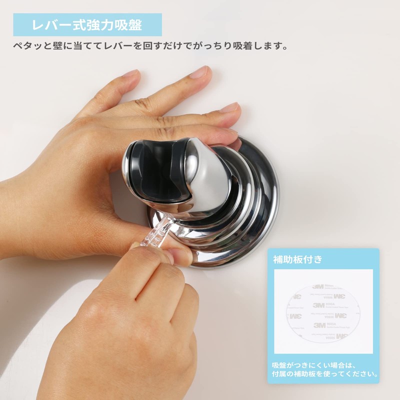 • (Powerful Suction Cup with Lever Type) Vacuum suction cup that adheres firmly by simply placing it on the wall and turning the lever. Shower holder's vacuum suction cup allows you to securely hold your shower head in place