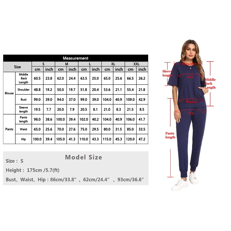 - Design: women's plain tracksuit. High waisted jogging bottoms with drawstring and elastic waistband, short sleeve top with crew neck, sweatshirts and trousers with pockets, two-piece tracksuits with loose tracksuits.
