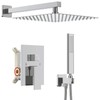 Iriber 12 Inch Bathroom Shower System Polish Chrome Wall Mounted Square Mixer Shower Faucet Combo Set with Hand Held Rough-in Valve Rainfall Shower and Trim