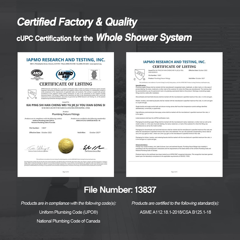 - Pressure balance valve: Pressure balance valve can avoid scalds by sudden change of water pressure, and protect your family member especially elder and children;