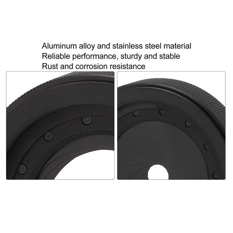 1、1.5mm To 26mm Adjustable: The aperture has an outer diameter of 45mm and an adjustable inner diameter of 1.5mm to 26mm, which provides small holes with different in the optical system to meet different light transmission requirements. 2、Simple Operation: Just use the handle to change the aperture diaphragm diameter, which is easy to operate and more directly for adjustment. 3、Reliable Materials: The aperture diaphragm is made of aluminum alloy and stainless steel, strong and sturdy, very reliable in performance. 4、Highly Stable: This diaphragm is light weight, will not add extra weight for optical systems, with high strength, rust and corrosion resistance, very stable. 5、Wide Application: This adjustable aperture diaphragm is suitable for cameras, microscopes and other machines, which can help them work better.