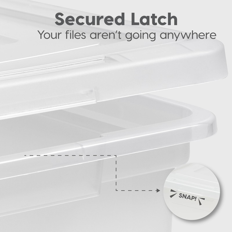 IRIS IRIS USA File Box Plastic File Organizer for Letter/Legal File, Document Box, Storage Bin Tote Organizer with Durable and Secure Latching Lid, Stackable, Nestable, BPA-Free, Clear 35 Qt. 4 Pack
