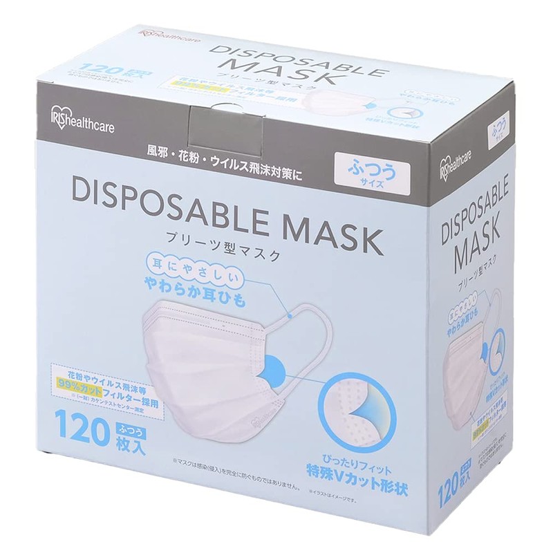Iris Ohyama 20PN-120PM Masks, 120 Pieces, Disposable, Pleated Masks, Non-woven, Normal Size