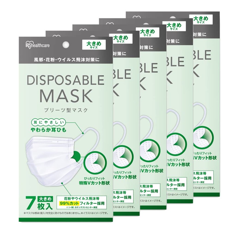 Iris Ohyama Disposable Pleated Mask, 35 Pieces, Non-woven Fabric, Large, 7 x 5 Masks