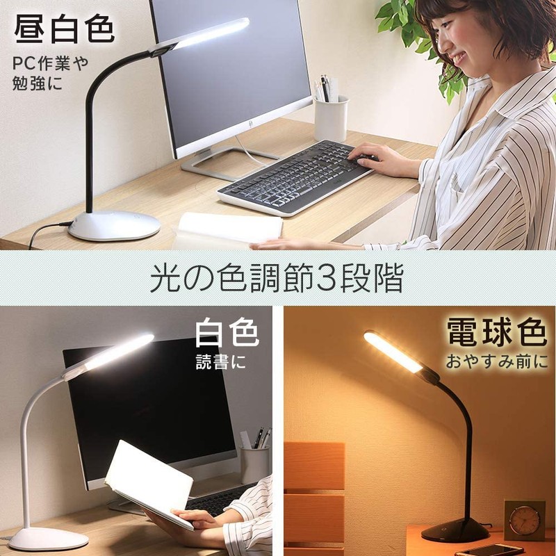 Iris Ohyama PDL-101-W LED Desk Light, 3 Toning Settings, Stepless Dimming, Easy Operation, Flexible Arm, Adjustable Angle, Energy Saving, White