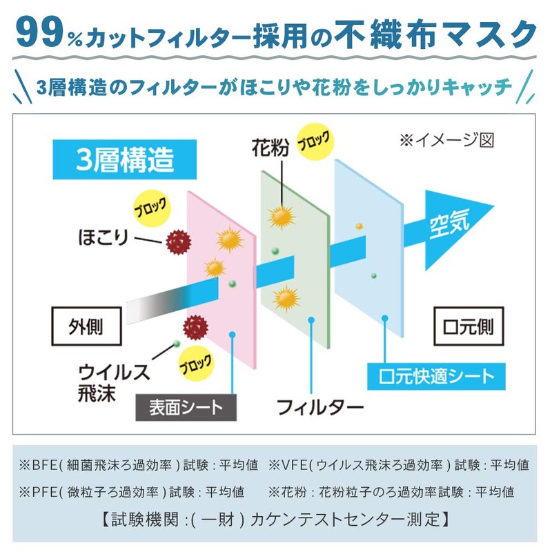 - Filter: Polypropylene; Ear strap: Polyurethane, Polyester; Nose wire: Polyethylene.