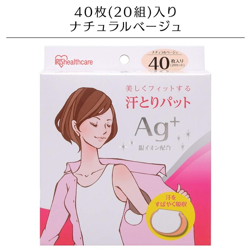 Iris Ohyama Sweat Absorbing Pads, Sweat Removal, Pack of 40, 20 Pieces, Natural Beige