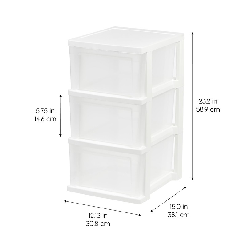 IRIS USA Plastic 3-Drawer Storage Organizer, 2-Pack, for Classroom Art Supplies Dresser Closet Bathroom Dorm Bedroom Laundry Room, Slim Narrow, White/Clear